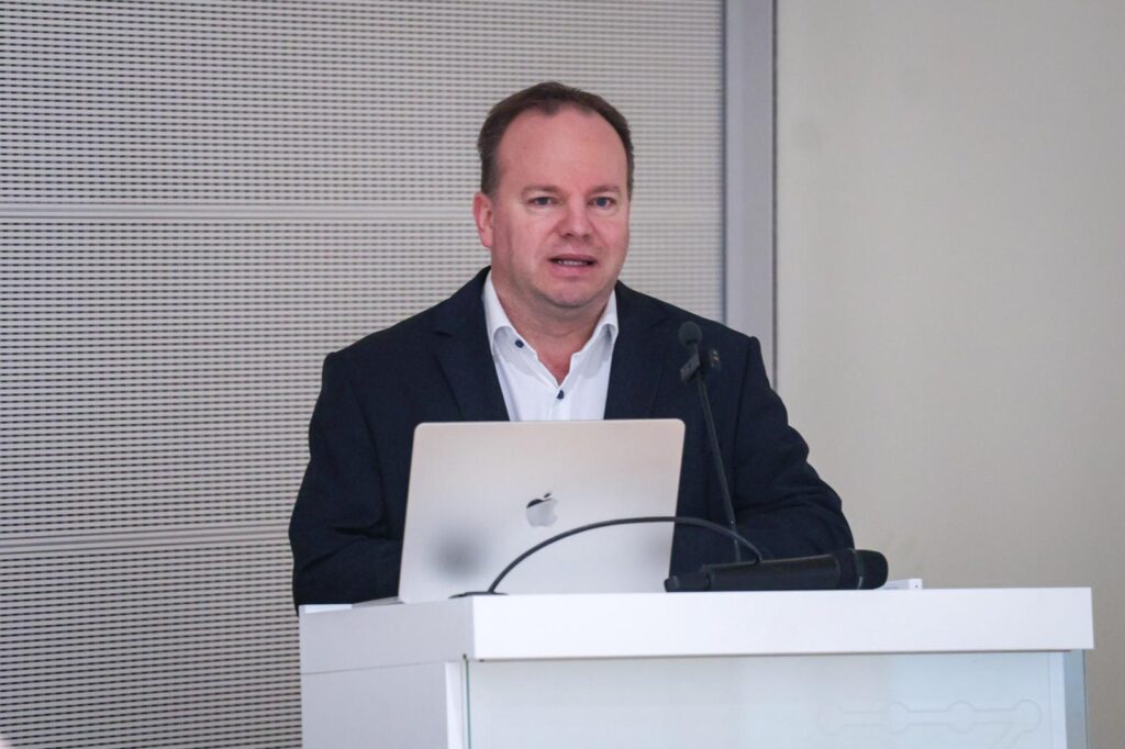 A délutáni program nemzetközi kitekintést hozott: Maurits Burgering, a Wageningen University & Research technológia-transzfer menedzsere angol nyelvű workshopot vezetett az európai egyetemi innovációs jó gyakorlatokról, az IP-menedzsmentről és a startup-támogatási lehetőségekről.